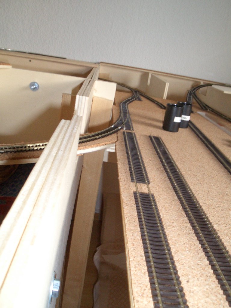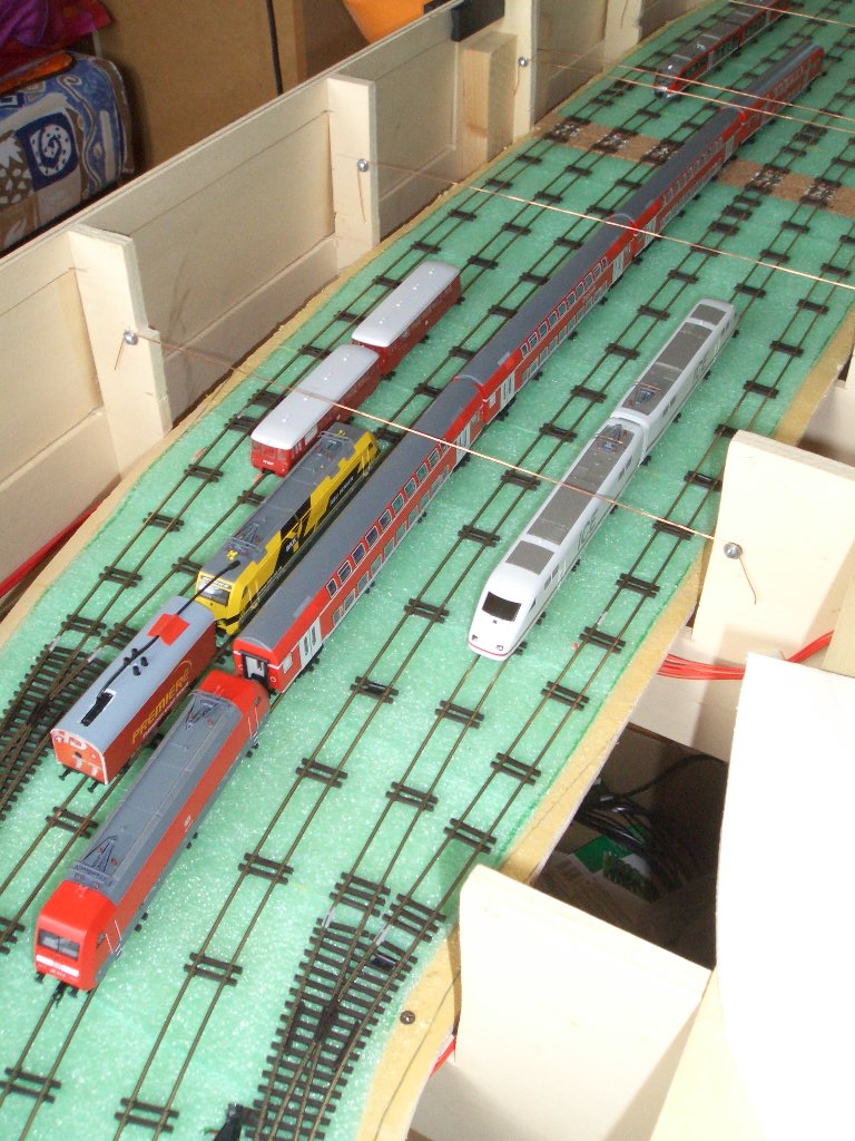 das Entkupplungsgleis wurde jetzt doch in die Sbf-Einfahrt eingebaut, da hier eine längere Gerade ist... in der Sbf-Ausfahrt hat es aufgrund der S-Kurve nicht geklappt
