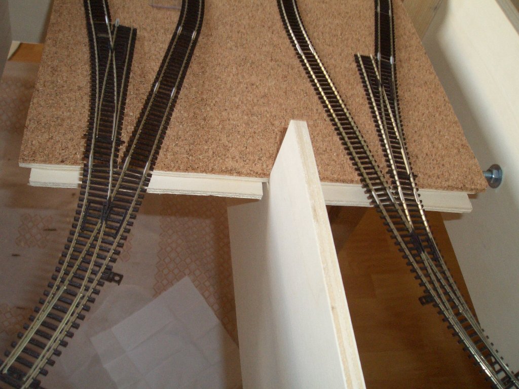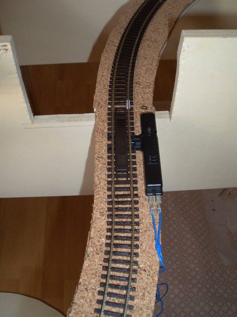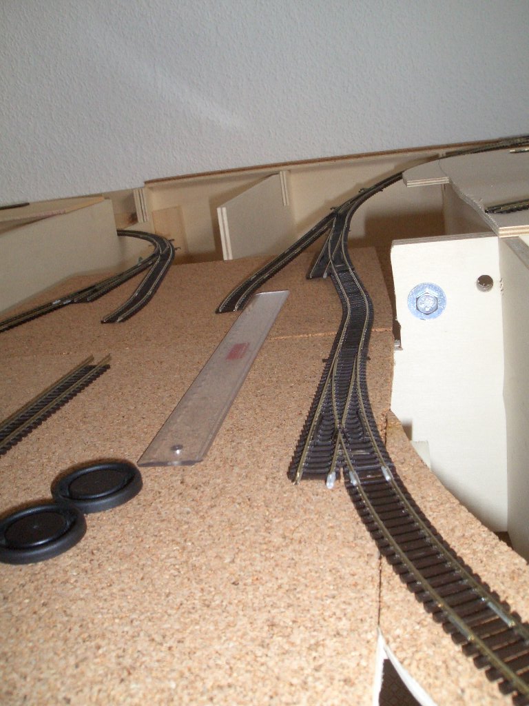 kürzere Gleisstückchen genommen, um genau in der Mitte der Einfahrt zum Sbf. den ISO-Verbinder einsetzen zu können