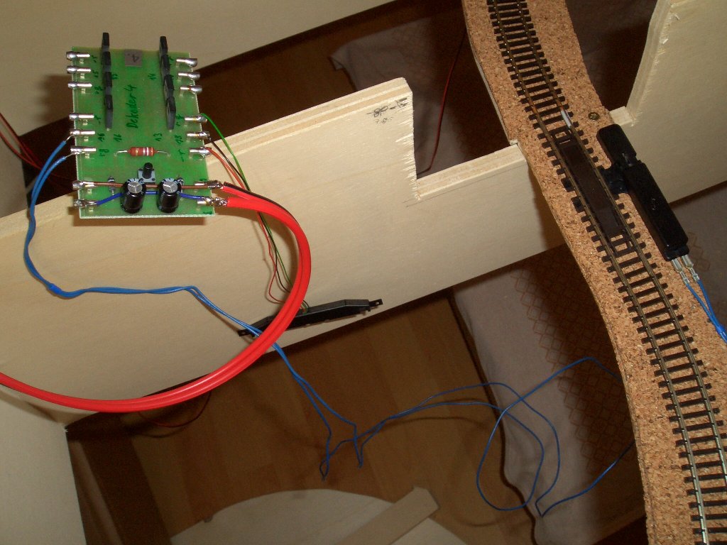 Magnetartikeldekoder 4 temporär für Entkupplungsgleis gelötet