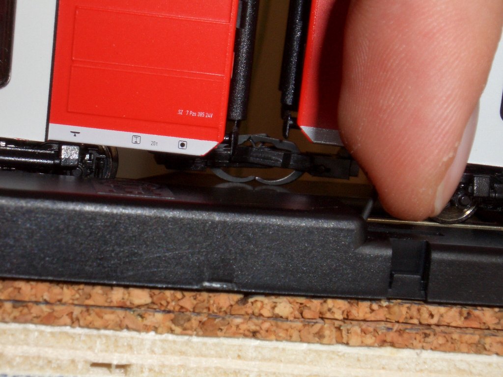 Entkupplungsgleis in Schaltstellung (Drahtbügler im Entkuppler leicht nach oben gebogen)